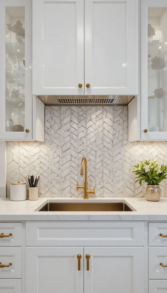 Using vertical tile patterns helps draw the eye upward, creating the illusion of height. Even in small spaces, a statement backsplash adds personality without overwhelming the design.