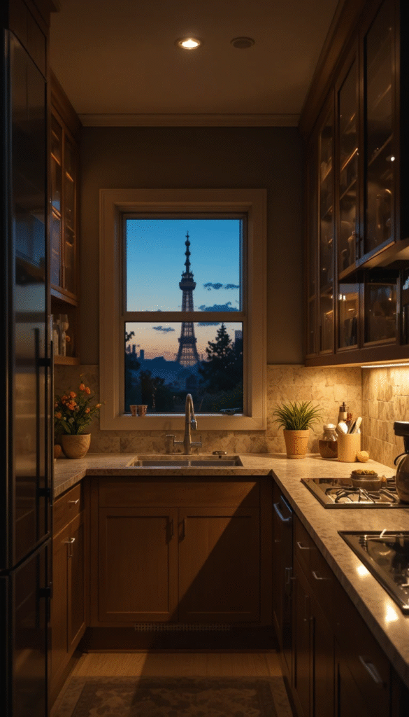 Lighting plays a critical role in small kitchens. Under-cabinet LED strips illuminate countertops and eliminate dark corners.