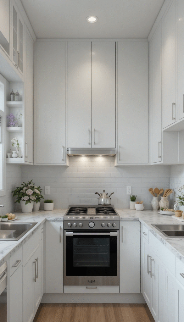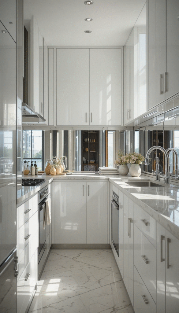 Strategic use of reflective surfaces can make a small kitchen feel significantly larger.