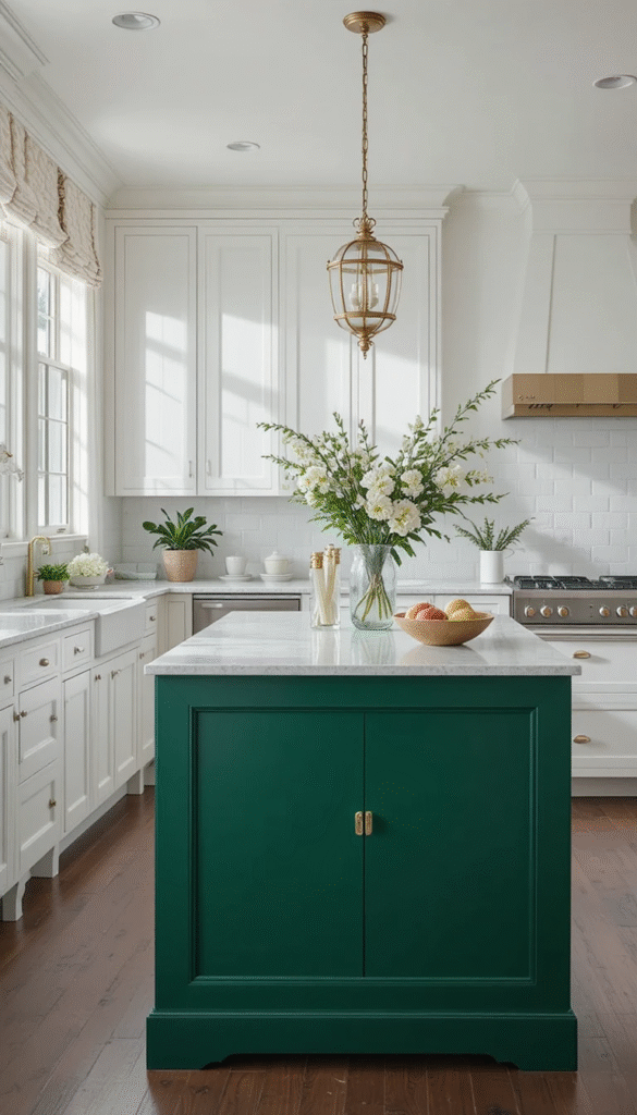 These colors are often used on islands, backsplashes, or decorative accessories to create focal points.
