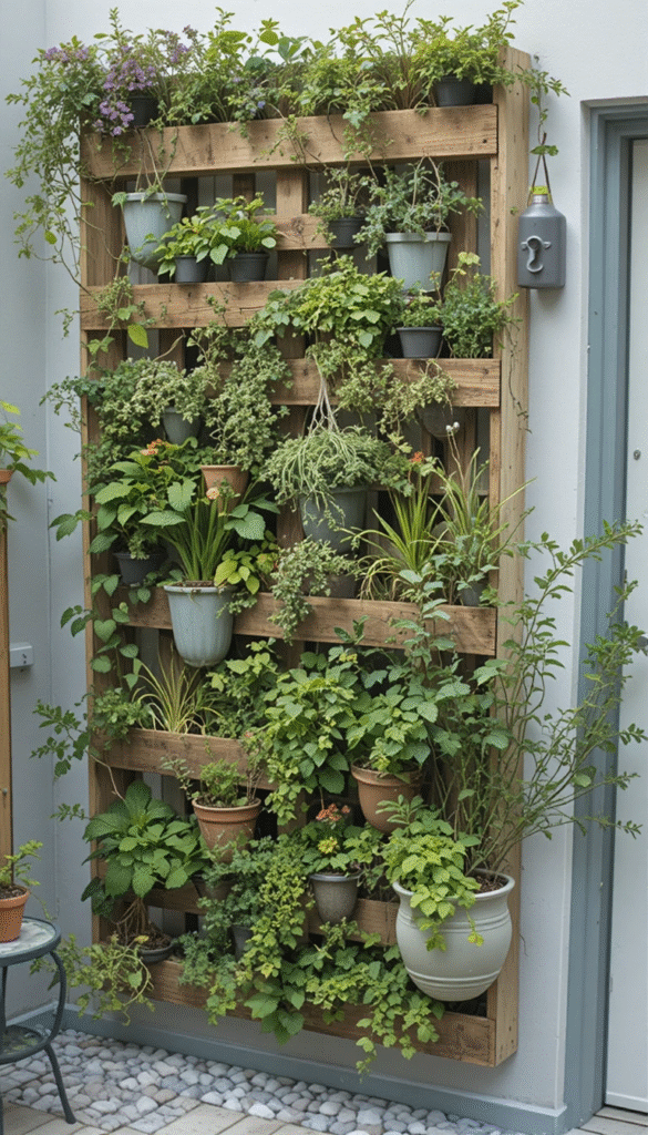 When floor space is limited, go vertical. Vertical garden walls are one of the top small patio trends for 2026 because they allow you to add greenery without using valuable ground space. Install wall-mounted planters, wooden pallets, or hanging pots to grow herbs, flowers, or small plants. This not only saves space but also creates a fresh and relaxing outdoor atmosphere.
