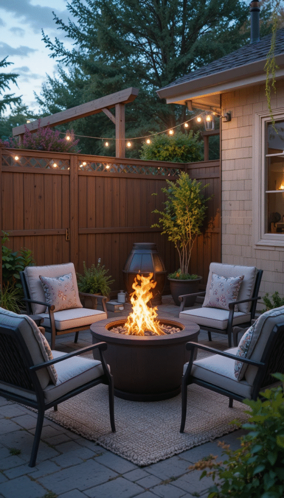 A compact fire pit can make a small patio feel luxurious and inviting. Many modern fire pits are designed specifically for small spaces and portable setups. Surround it with a couple of comfortable chairs to create a cozy evening gathering spot where friends and family can relax.