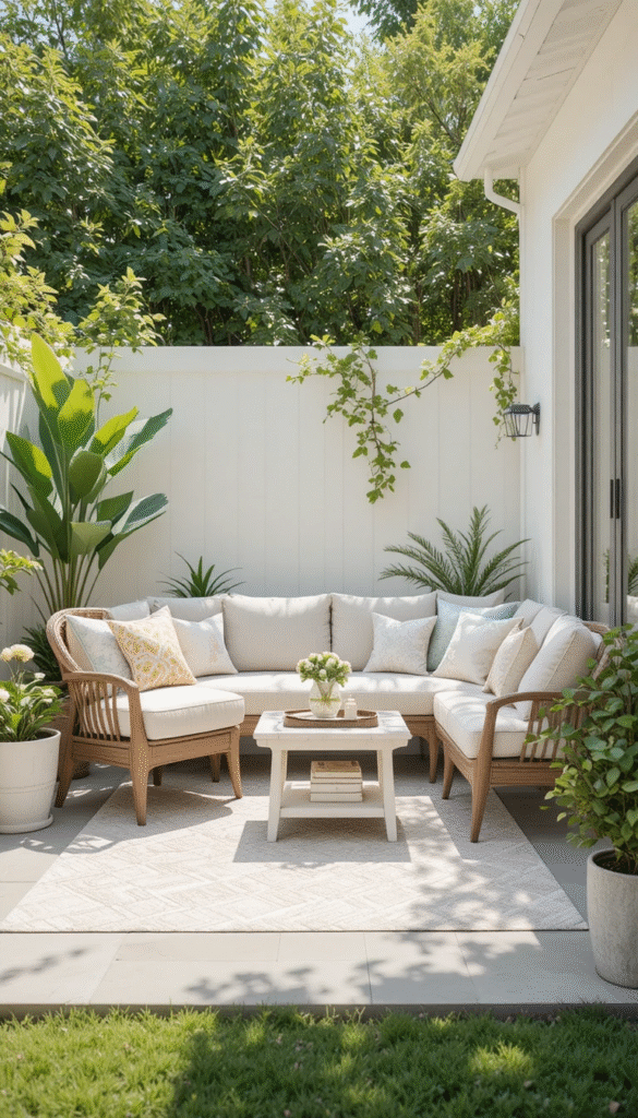 Light colors reflect sunlight and make small areas feel more open. Choosing light-colored furniture, cushions, and decor can visually expand a tiny patio. Shades like white, beige, light gray, and soft pastels are especially effective in creating an airy outdoor environment.