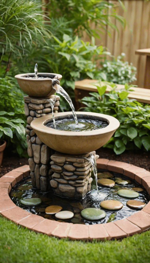 A mini water fountain or tabletop water feature can make a patio feel peaceful and relaxing. The gentle sound of flowing water creates a calming ambiance and helps mask background noise from traffic or neighbors.