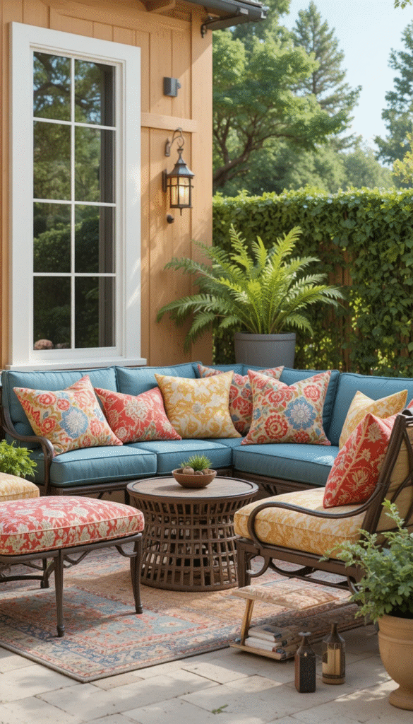 Soft cushions instantly make outdoor seating more inviting. Choose weather-resistant cushions with bright patterns or textured fabrics to add personality to the patio. Mixing colors and patterns can make the space feel lively and comfortable.
