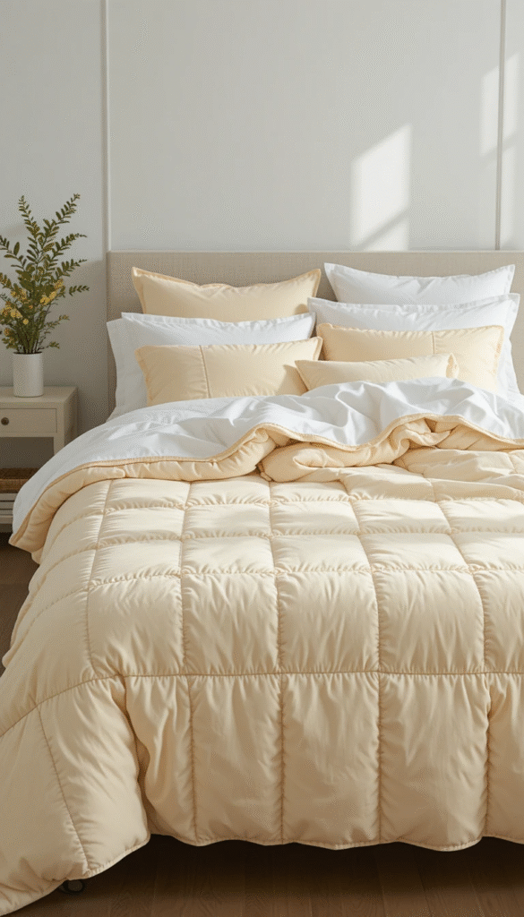 As temperatures rise in spring, it is time to pack away your heavy winter comforter and replace it with a light, breathable quilt. Cotton quilts in soft spring tones or classic white are perfect for warm nights when you still want something to snuggle under. A beautifully patterned quilt can also serve as a decorative focal point on your bed, especially when layered with matching or complementary pillow shams. This practical swap also makes laundry day much easier during the warmer months.