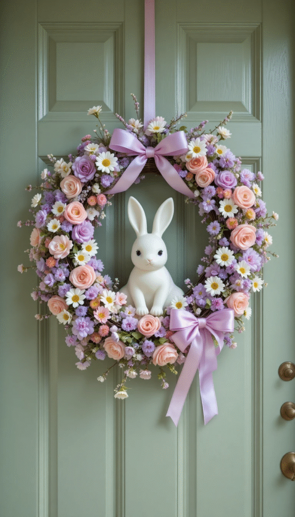 5. Adorable Bunny and Ribbon Easter Wreath