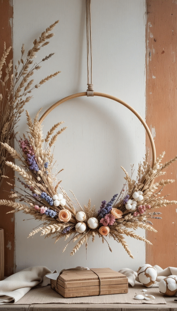 11. Trendy Boho Easter Wreath With Dried Flowers