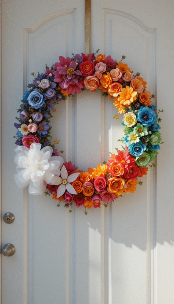 12. Bright and Joyful Rainbow Spring Wreath