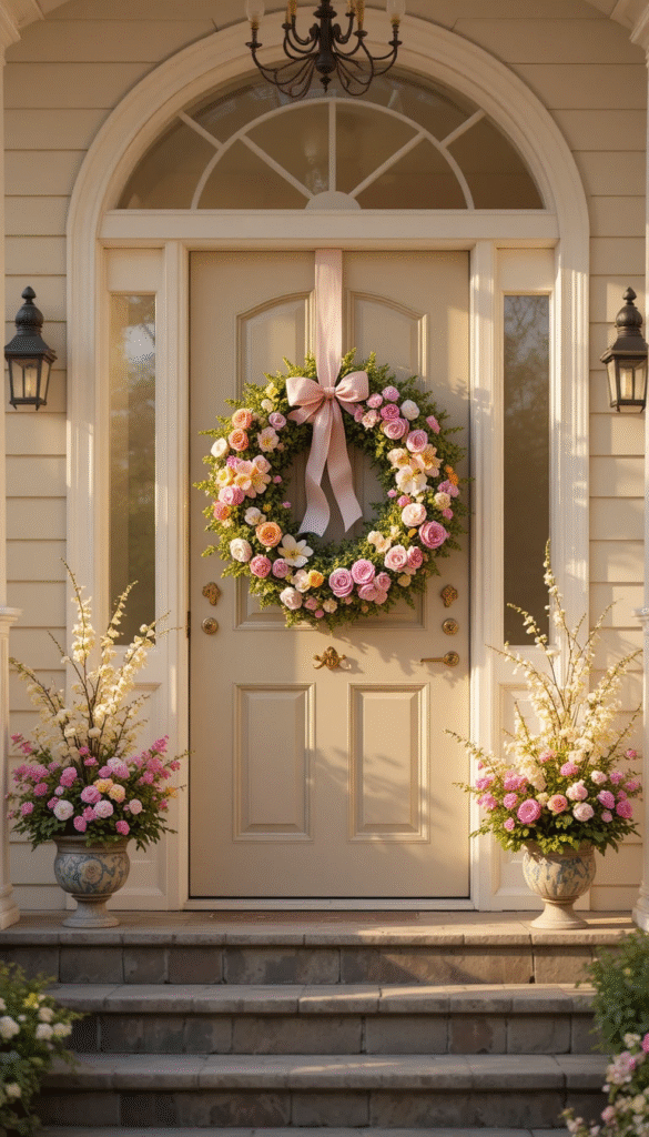 For those who want the most beautiful and fragrant Easter wreath possible, nothing beats a fresh flower wreath made with real blooms from your garden or local florist. Tulips, daffodils, hyacinths, ranunculus, and peonies are all excellent choices for a spring Easter wreath because they are in season and available in the soft, romantic colors associated with the holiday. You will need a floral foam base or a wire frame with water tubes to keep the flowers hydrated, and the wreath will last beautifully for several days with proper care. The advantage of a fresh wreath is that it brings real fragrance to your entryway, creating a truly sensory and luxurious welcome for everyone who walks through your front door.