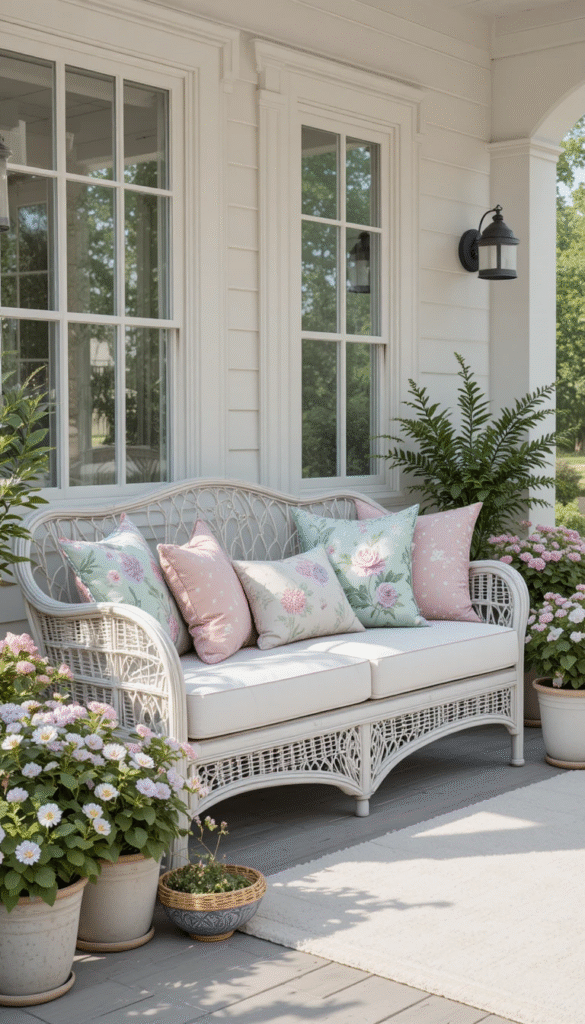 1. Layer Pastel-Colored Throw Pillows on Your Porch Seating
