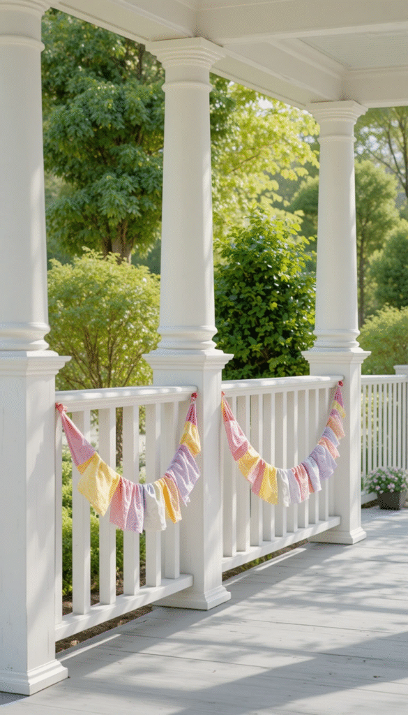 7. Decorate Your Porch Railing with Pastel Ribbon Bunting