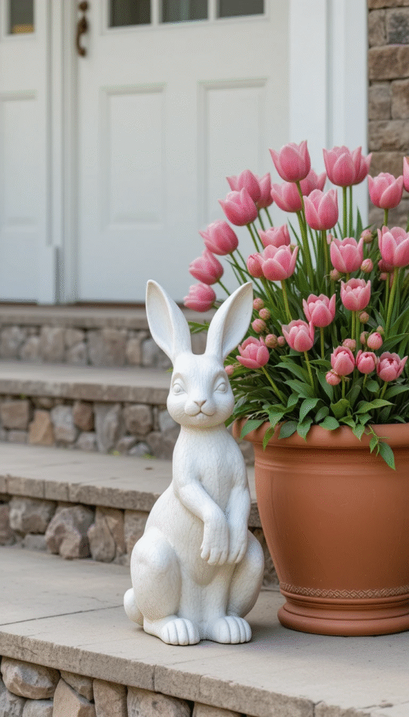 8. Place a Bunny Statue or Figurine as a Porch Centerpiece