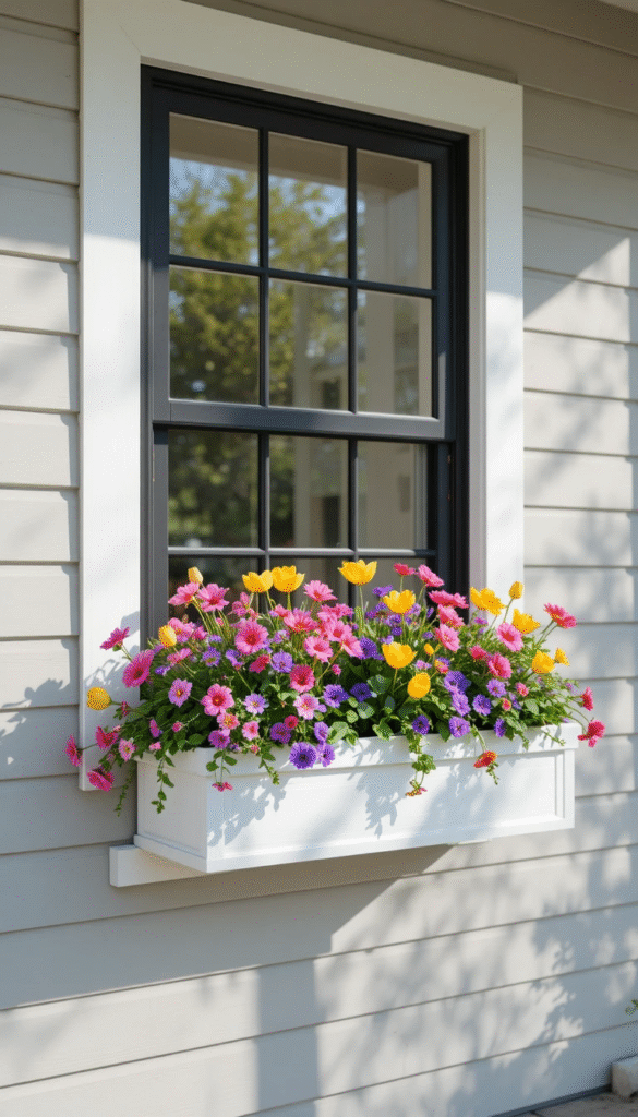 16. Hang a Window Box Planter Overflowing with Spring Blooms