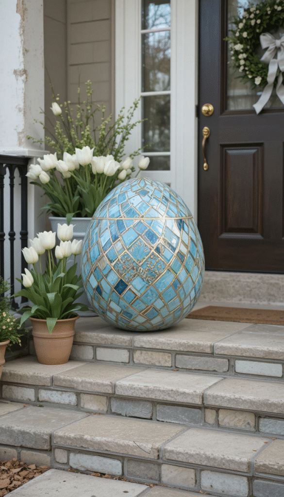 18. Place an Oversized Decorative Easter Egg Near Your Steps