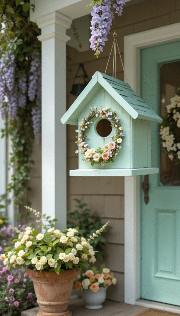 21. Incorporate a Birdhouse or Bird Feeder with Spring Details