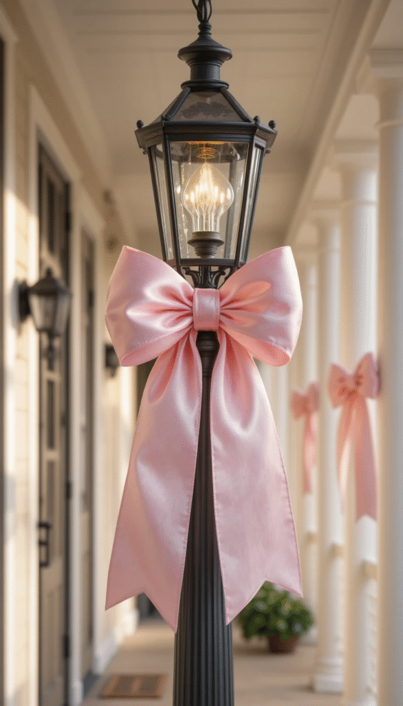 24. Tie Pastel Ribbon Bows to Your Porch Light Fixtures