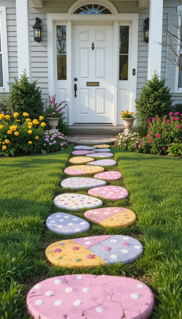 25. Use Easter Egg-Shaped Stepping Stones Leading to Your Door