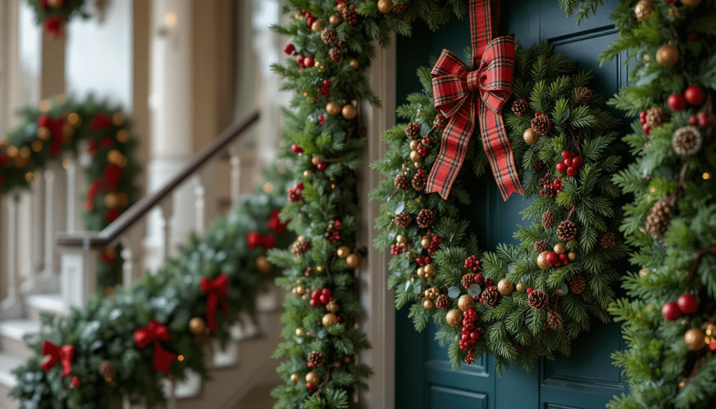Nothing says Christmas like the scent and sight of fresh greenery. Evergreen garlands and wreaths are the heart of traditional holiday decorating. Hang lush garlands over your staircase, fireplace, or doorway, and adorn them with red bows, pinecones, and fairy lights. A wreath with berries and a plaid ribbon on the front door sets the tone for your entire home—warm, inviting, and festive.