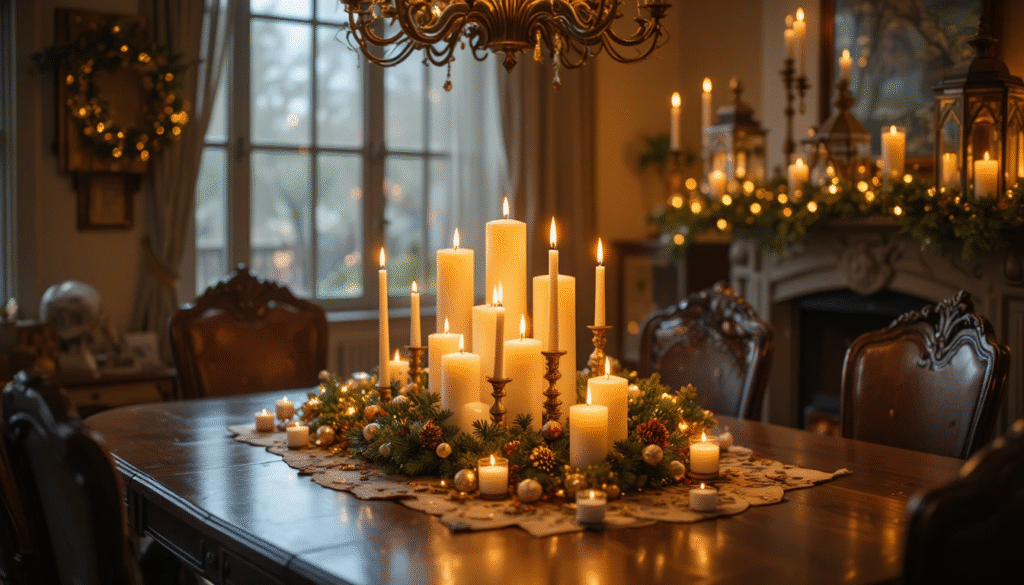 Traditional Christmas decor embraces soft, glowing light. Place candles, lanterns, and tea lights throughout your home to create a warm, magical atmosphere. Cluster candles of different heights on the dining table or mantel for a layered glow. For safety and convenience, use flameless candles that mimic real flames while keeping your home safe and comfortable.