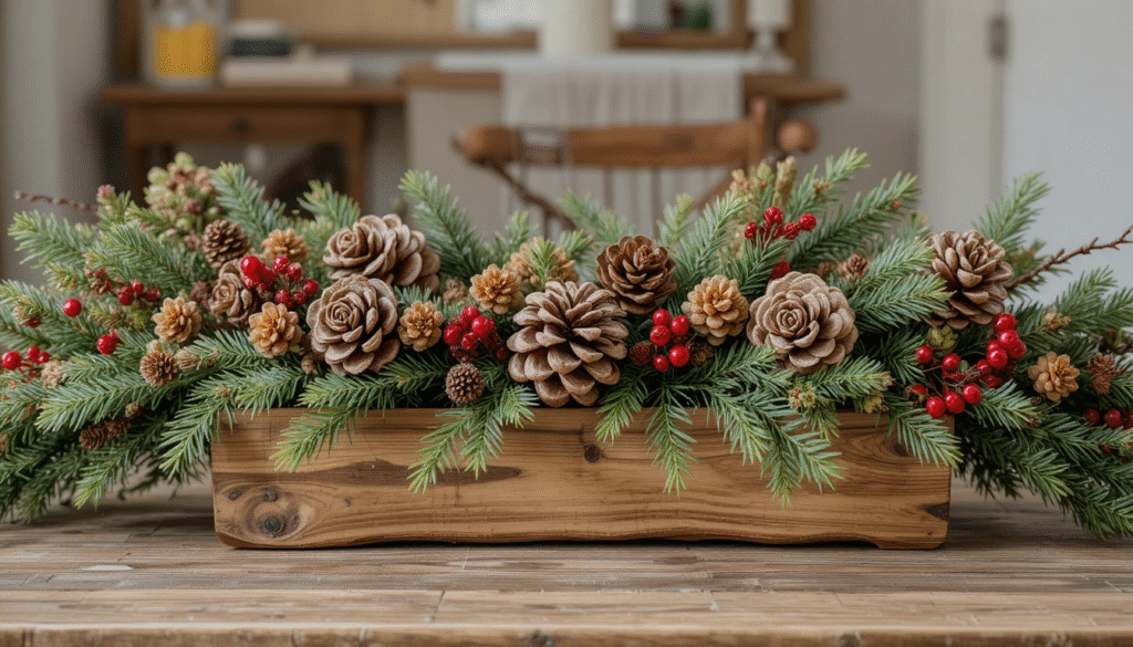 Bring the outdoors inside with natural materials like wood, pinecones, and twigs. A rustic wooden centerpiece or wooden ornaments can give your decor a handcrafted, traditional charm. Combine them with greenery and red berries for a fresh, festive look. Natural elements make your home feel authentic and connected to the beauty of winter.