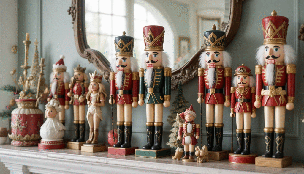 No traditional Christmas decor is complete without nutcracker soldiers and holiday figurines. Place them on mantels, bookshelves, or entryway tables to add a touch of whimsy and nostalgia. Choose wooden nutcrackers in classic red, gold, and green hues to maintain that old-world charm. They instantly elevate your holiday decor and delight both kids and adults alike.