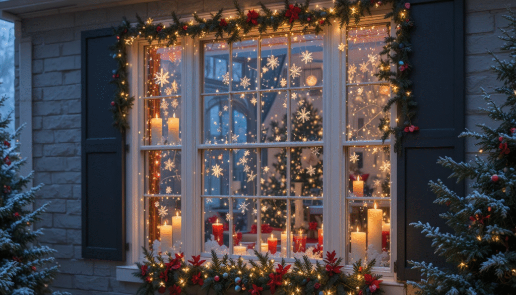 Don’t forget your windows! Frame them with garlands, candles, or twinkling fairy lights for a warm glow from inside and out. You can also hang simple ornaments or snowflake decals on the glass for an added festive touch. Windows are a great way to spread holiday cheer to neighbors and passersby.