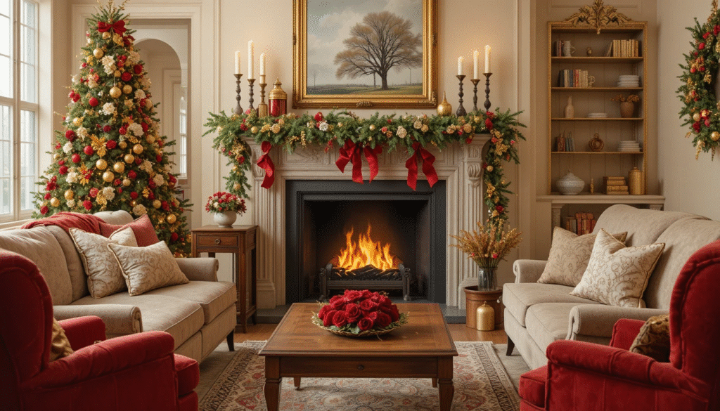 Traditional Christmas decor begins with color. Think deep reds, rich greens, shimmering golds, and snowy whites. These shades instantly evoke the warmth and joy of the season. Red and green symbolize life and rebirth, while gold and white add a touch of sparkle and purity. Try pairing red velvet ribbons with gold ornaments or layering green garlands over white mantels for a perfectly classic effect.