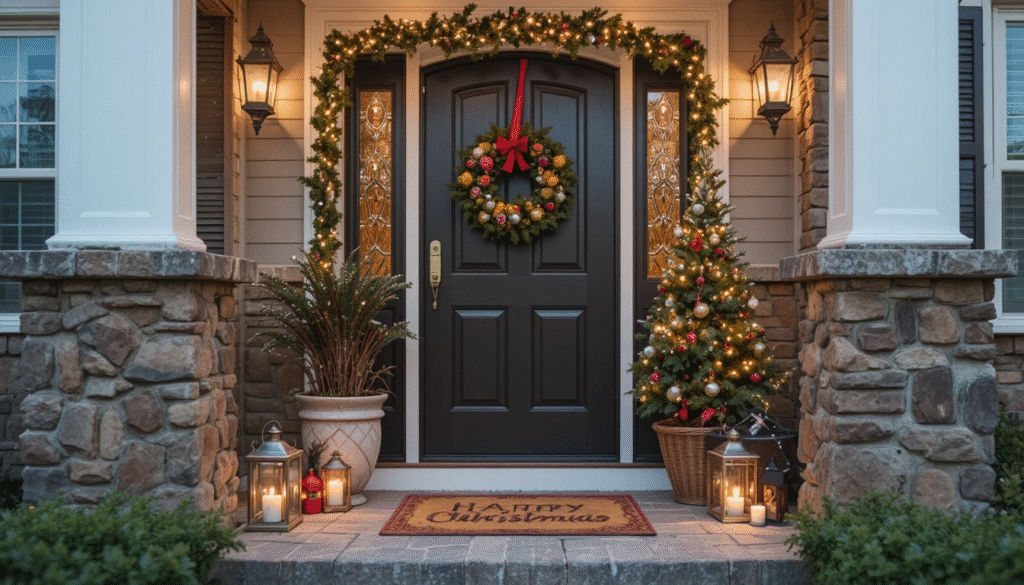 Your entryway sets the stage for your home’s festive spirit. Decorate it with a wreath, a small Christmas tree, and a doormat with a holiday message. Add lanterns or a string of lights around your doorway for a warm, inviting glow. Guests will instantly feel the Christmas magic as soon as they step inside.