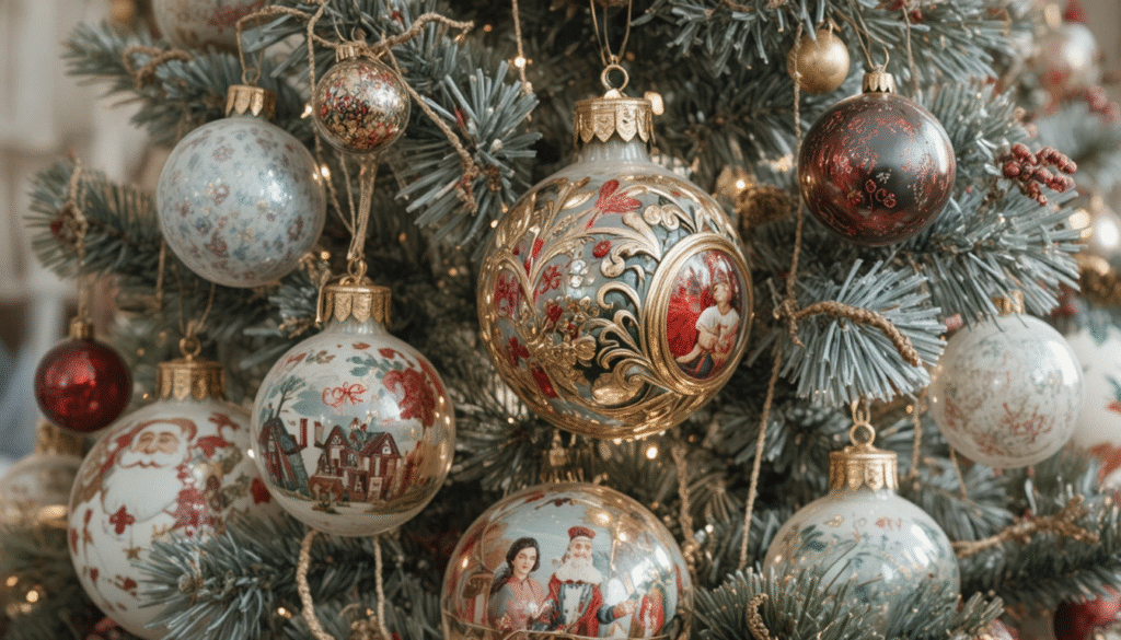 Start your holiday decorating with vintage glass ornaments. Think mercury glass, hand-painted baubles, and charming figurines like Santas, reindeer, or snowmen. Mix them with modern pieces for a balanced look that feels both nostalgic and stylish. You can often find these treasures at flea markets, antique shops, or even online. Display them on your tree, in glass bowls, or along your mantel for a classic vintage sparkle.