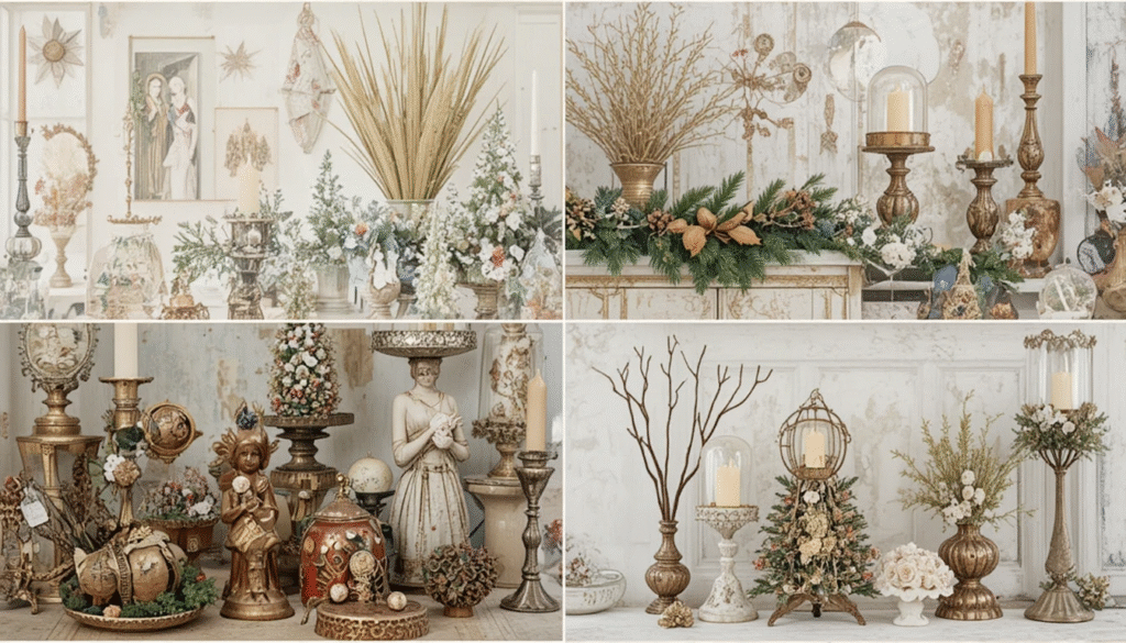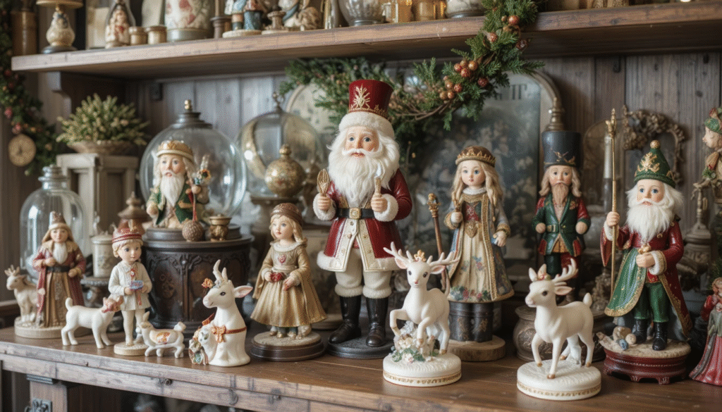 Vintage figurines, nutcrackers, and snow globes add personality and charm to any space. Display antique holiday collectibles on shelves, mantels, or tabletops to evoke the magic of Christmas past. Look for ceramic Santa figurines, carolers, or reindeer sets to mix with your modern decor. These pieces tell stories of generations gone by and make your holiday setup truly unique.