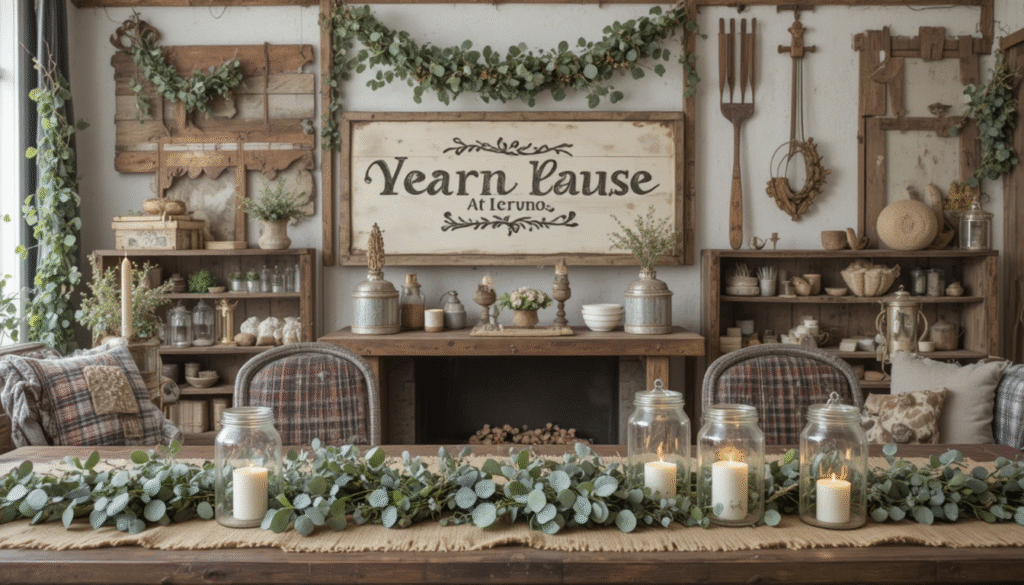 For a cozy and nostalgic atmosphere, go for a rustic farmhouse vintage theme. Use materials like burlap, wood, and galvanized metal to create warmth and texture. Decorate with plaid blankets, wooden signs, and Mason jar candle holders. Add greenery like pine garlands and eucalyptus for an earthy, timeless feel that pairs beautifully with antique accents.