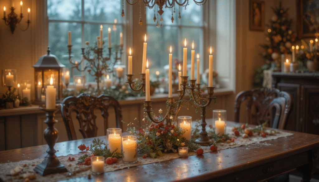 Soft lighting enhances the nostalgic vibe of your decor. Use antique candle holders, brass lanterns, or candelabras to create a vintage glow around your home. Arrange them on dining tables, mantels, or window sills. The gentle flicker of candlelight brings warmth and adds that old-world charm that defines vintage Christmas style.